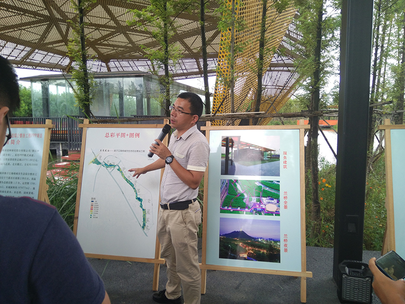 蘭溪市政管理處主任張正權(quán)在介紹蘭溪揚(yáng)子江公園海綿城市建設(shè)成果