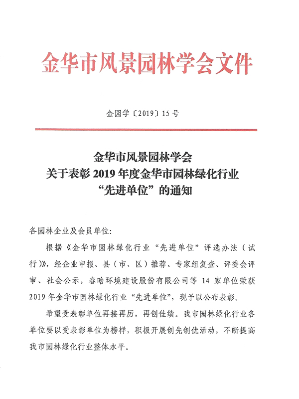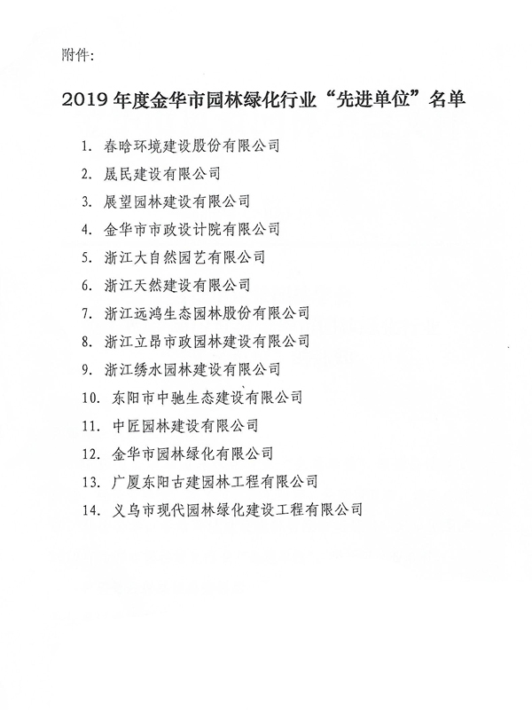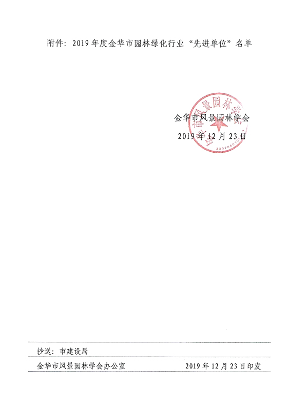 2019年金華市園林綠化先進(jìn)、誠(chéng)信單位