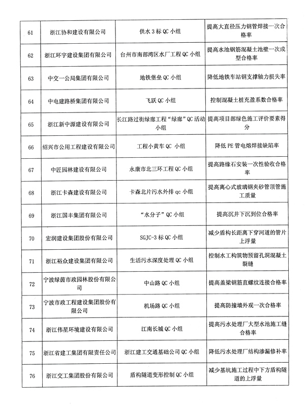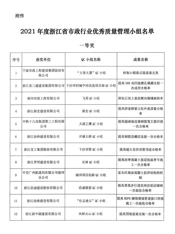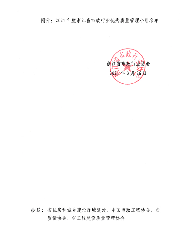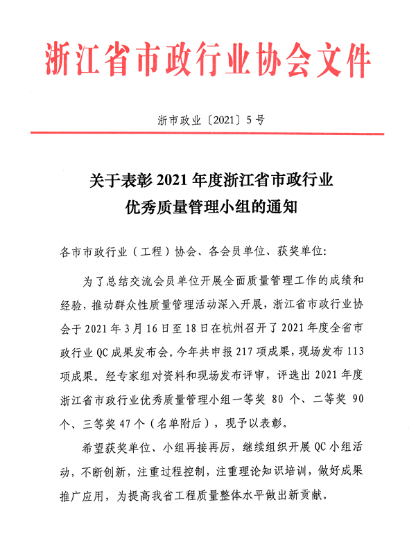 關于表彰2021年度浙江省市政行業優秀質量管理小組的通知