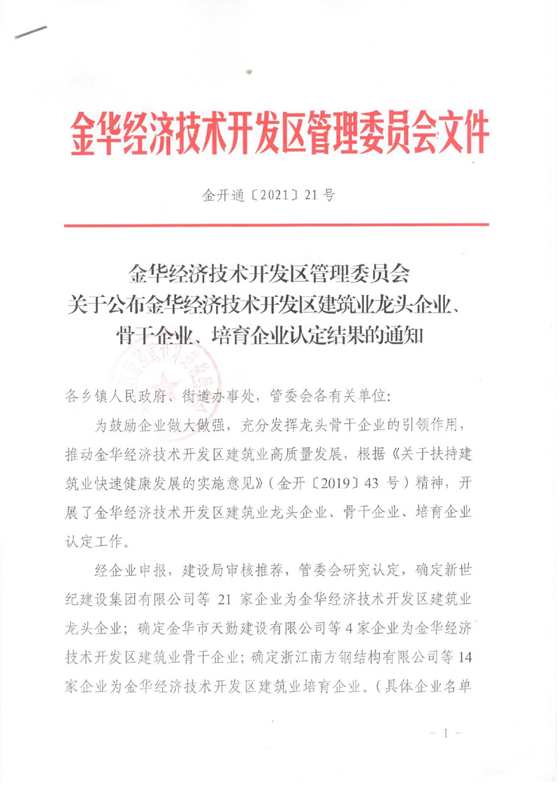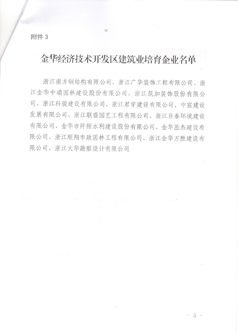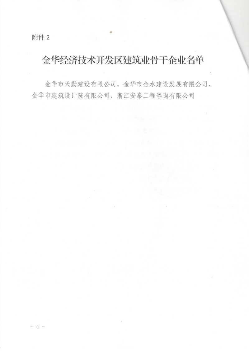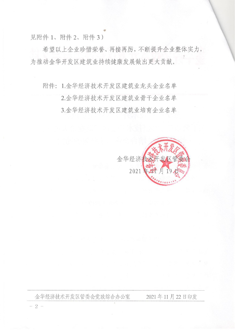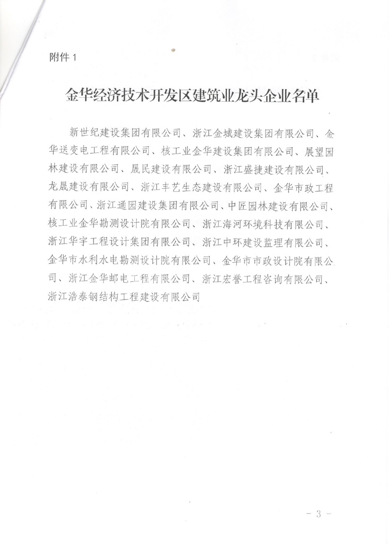 關于公布金華經(jīng)濟技術開發(fā)區(qū)建筑業(yè)龍頭企業(yè)、骨干企業(yè)、培育企業(yè)認定結果的通知