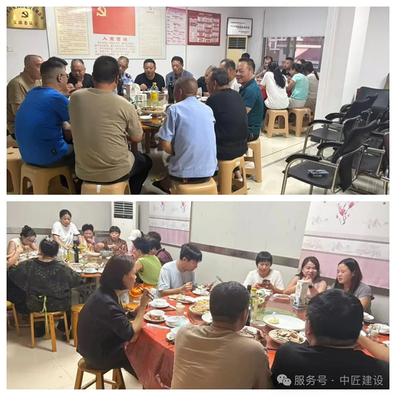 晚飯一個個圓桌拼出團圓陣,企業員工與社區居民圍坐一堂,包子的甜香與家常菜的煙火氣交織彌漫。社區阿姨端來拿手的菜,企業年輕人與長輩們的家常話融在一起。舉杯時,“中秋快樂”“闔家幸福”的祝福聲此起彼伏,平日里的同事、鄰里此刻都成了“一家人”,酒杯碰撞的脆響與歡聲笑語在暖黃燈光下回蕩,每個人臉上都洋溢著滿足的笑容,仿佛這一桌桌飯菜不僅暖胃,更將心與心的距離拉得更近,勾勒出一幅企業與社區攜手、共慶佳節的溫馨畫卷!