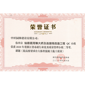 2020仙居河埠大橋浙江省市政優秀QC二等獎